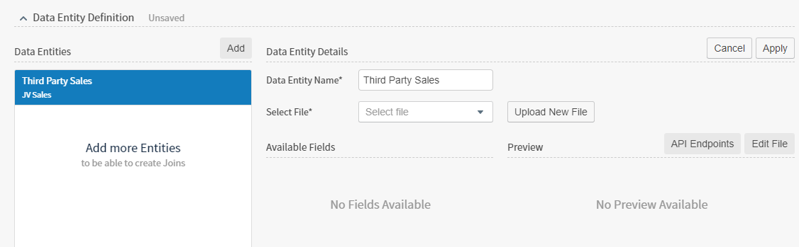 Select Add to add a new data entity, then select From File.