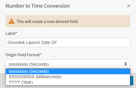 Note: The information returned is limited by the information available in the original field. For example, if a field's data is stored in hours, you will get values up to the hour level. If you request granularity not available, zeros are returned for information not available, for example, 0 minutes, 0 seconds, and 0 milliseconds. When your changes are complete, select Save create the derived field.