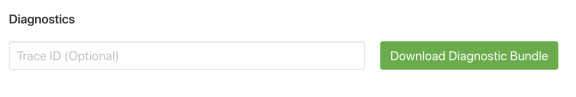 If the tracing service is not configured, the Trace ID box will be disabled, with a relevant error message. When this happens, the diagnostic bundle contains only log files.