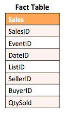 The following figure illustrates a sample fact table containing sales information that includes the identifiers for each sales transaction along with the related event (and other information).