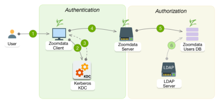 Kerberos authentication is often paired with LDAP to look up a user's authorization or group membership. Composer will look up the user's group membership. For more information, see the topic on Use Lightweight Directory Access Protocol (LDAP) .