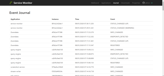 The Journal view allows you to review the journal entries for each Composer microservice type.