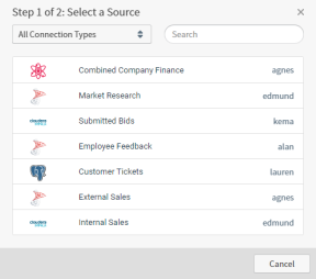 Select a data source on the Step 1 of 2: Select a Source dialog. The Select a Visual Type dialog appears.